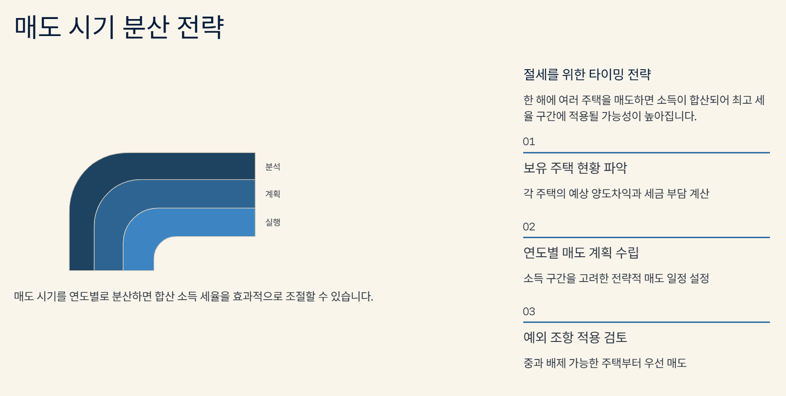 - 절세 팁: 매도 시기를 연도별로 분산하여 합산 소득 세율을 조절