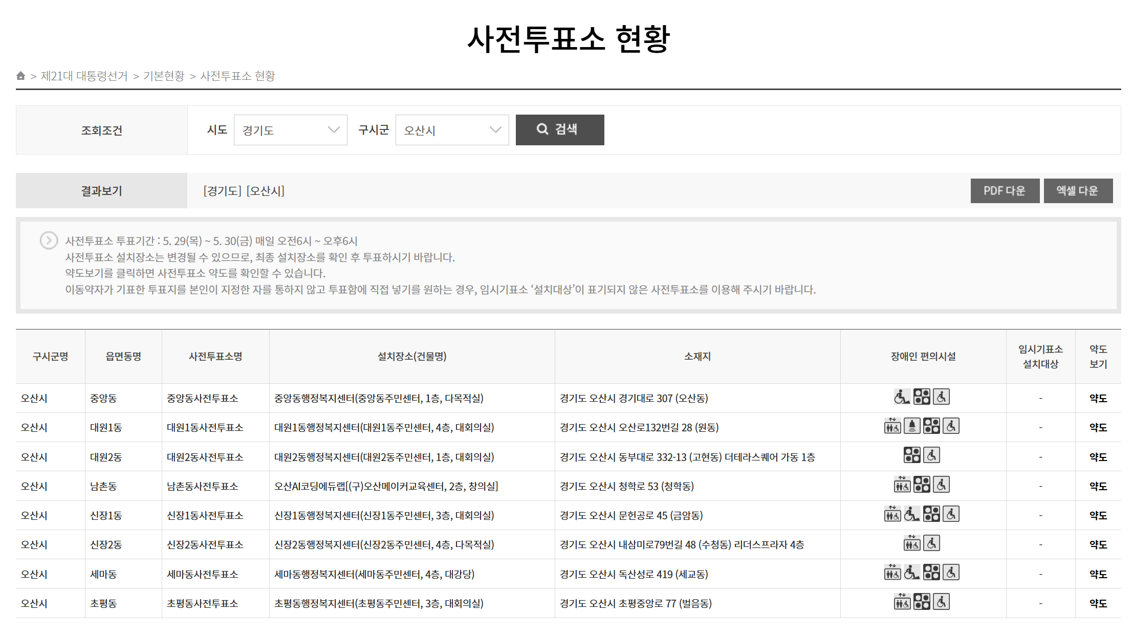 오산시 대통령선거 사전투표소 위치 및 일정 총정리