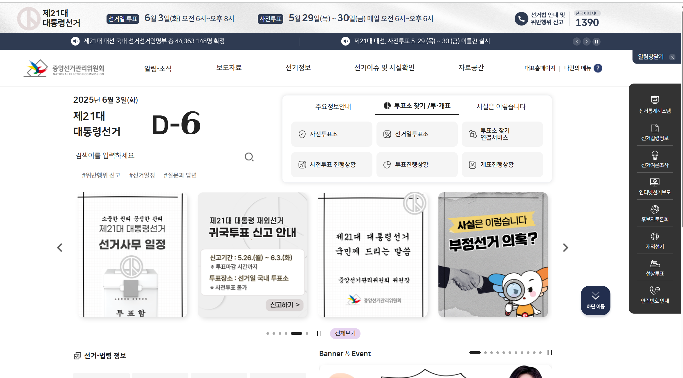 2025년 제21대 대통령선거는 6월 3일(화)에 본투표가 실시되며, 사전투표는 5월 29일(목)부터 30일(금)까지 양일간 진행됩니다. 사전투표는 오전 6시부터 오후 6시까지 운영되며, 거주지와 상관없이 전국 어디에서나 가능합니다.