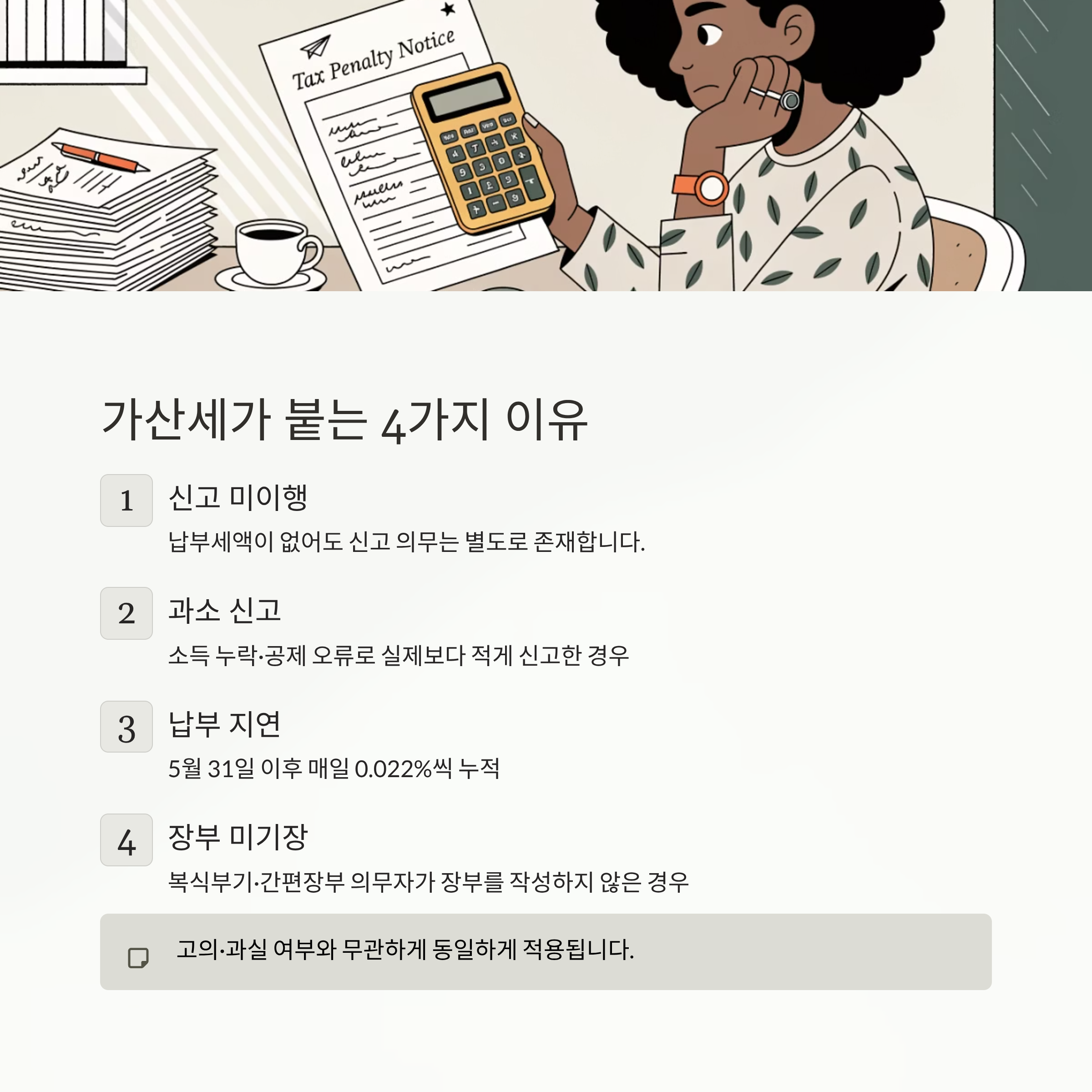 매년 5월이 되면 종합소득세 신고 기간이 시작됩니다. 신고를 놓치거나 잘못 신고했을 때 붙는 것이 바로 가산세인데요. 생각보다 금액이 커서 당황하는 경우가 적지 않습니다.