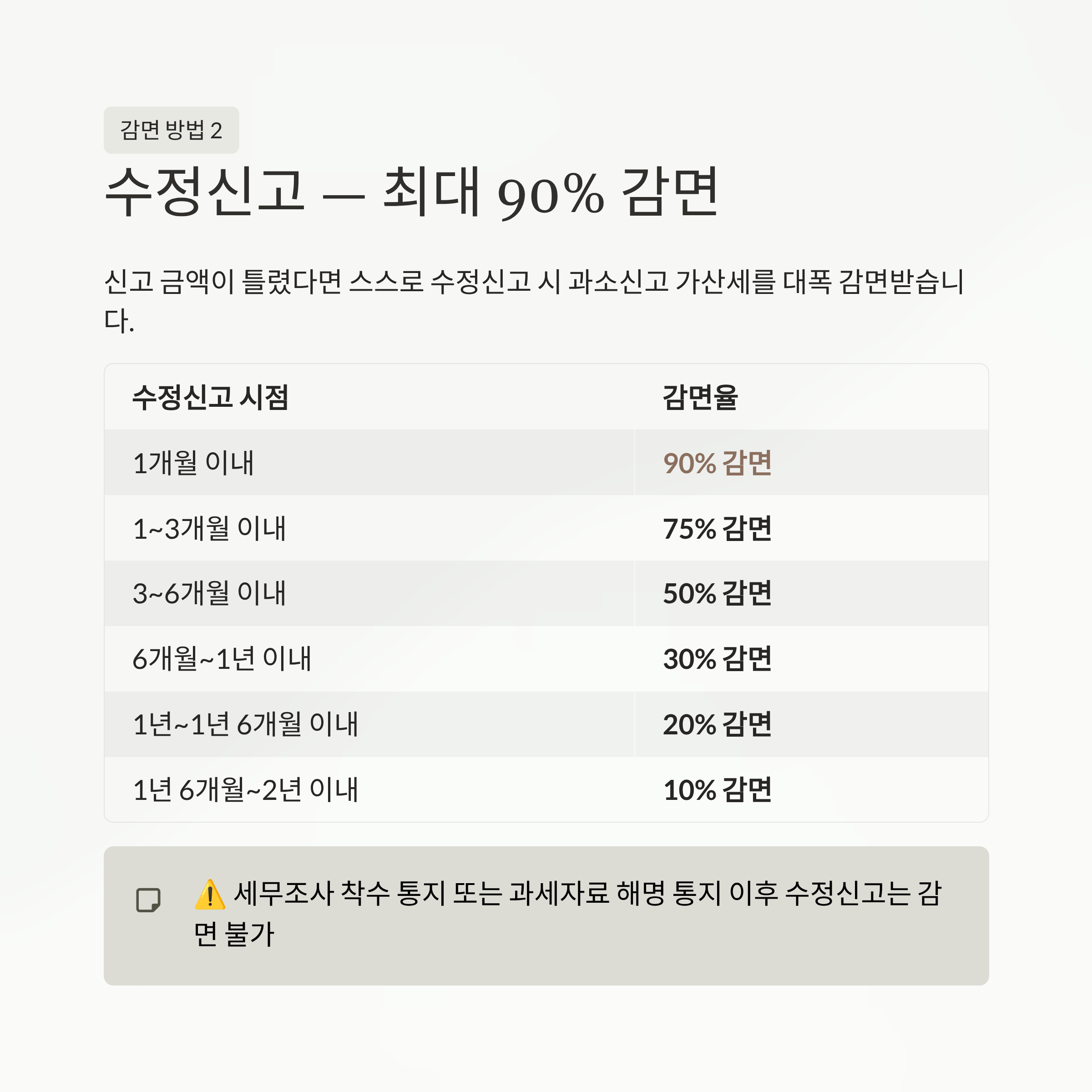 ✅ 수정신고: 1개월 이내 90% 감면 — 빠를수록 유리