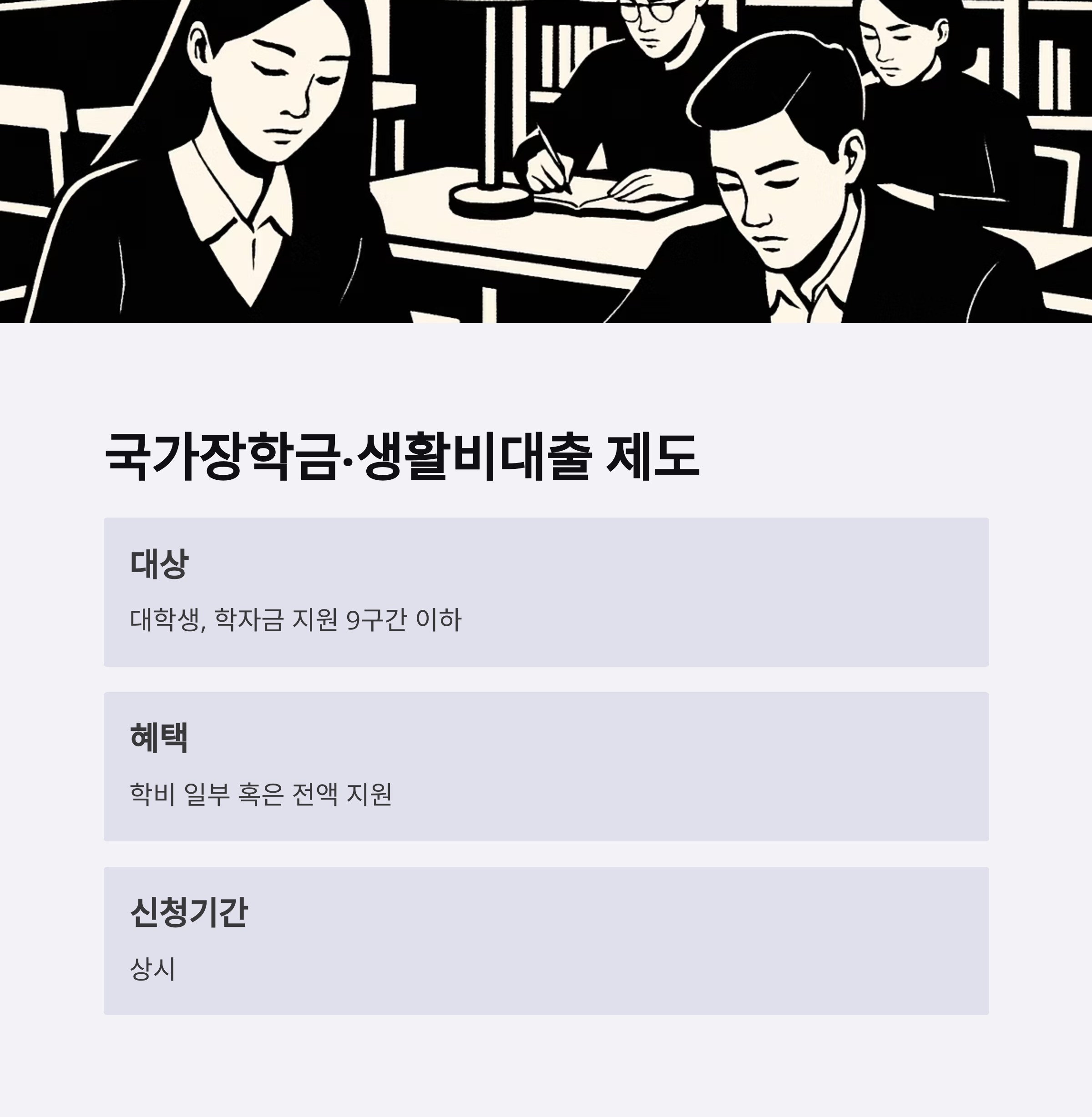 대학생이라면 생활비 부담 줄여주는 생활비 대출 제도와 함께 국가장학금 지원도 받을 수 있어요.
