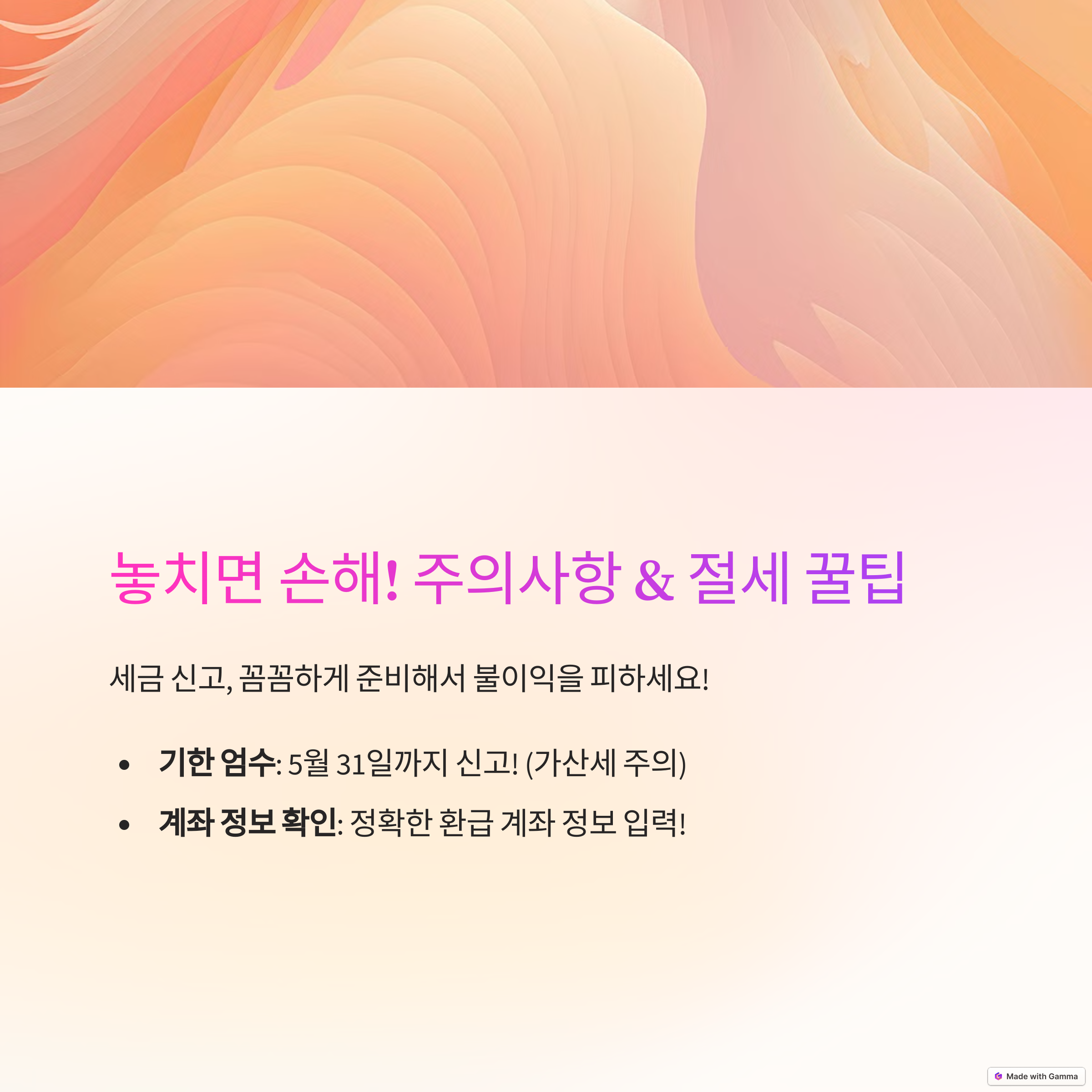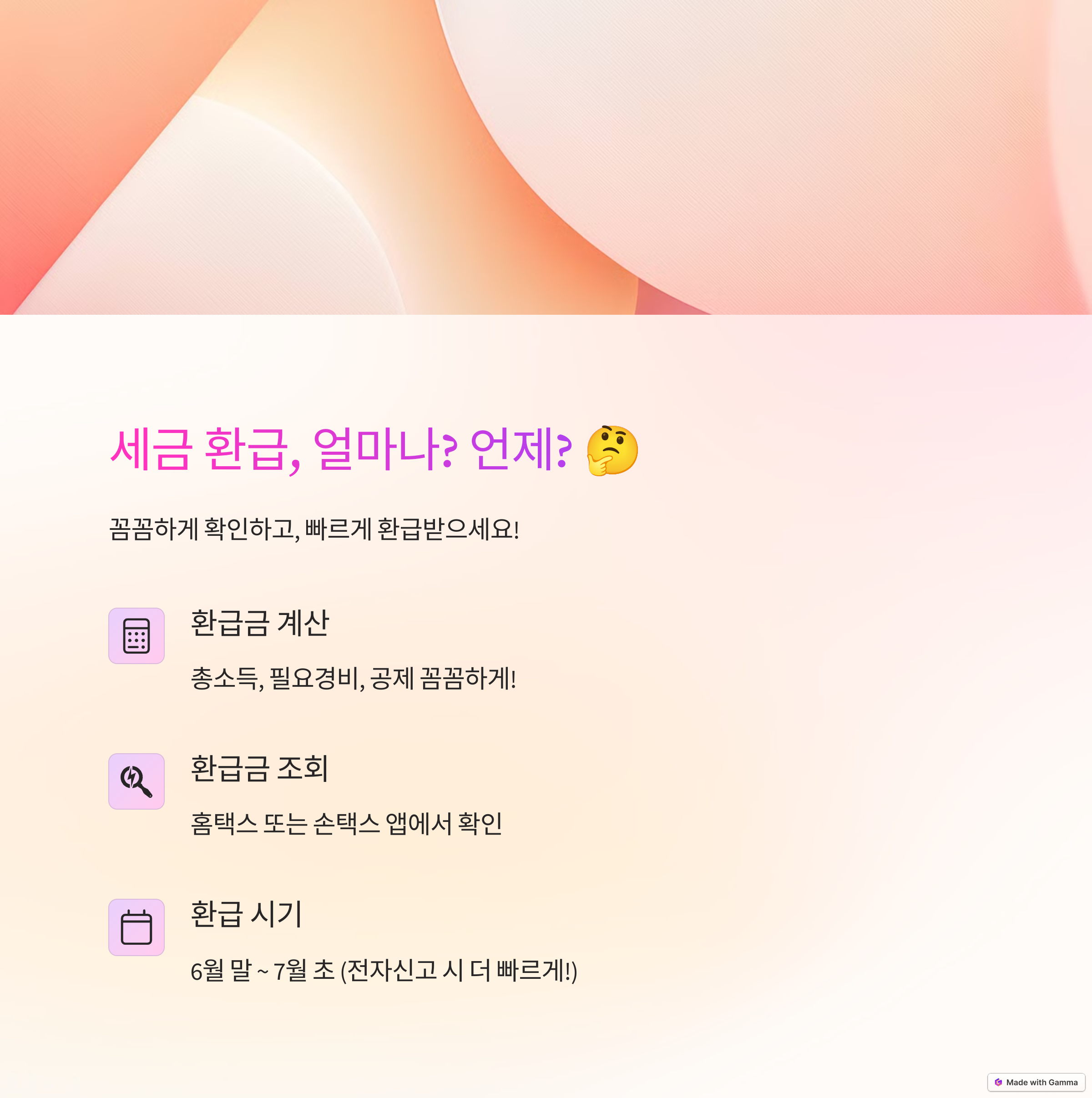 지금부터 천천히 준비하신다면, 정확한 신고와 빠른 환급을 받을 수 있어요!